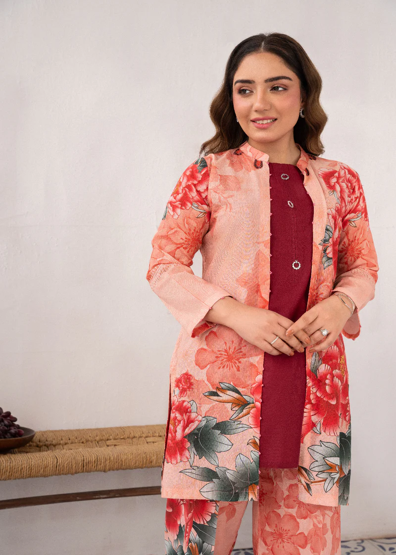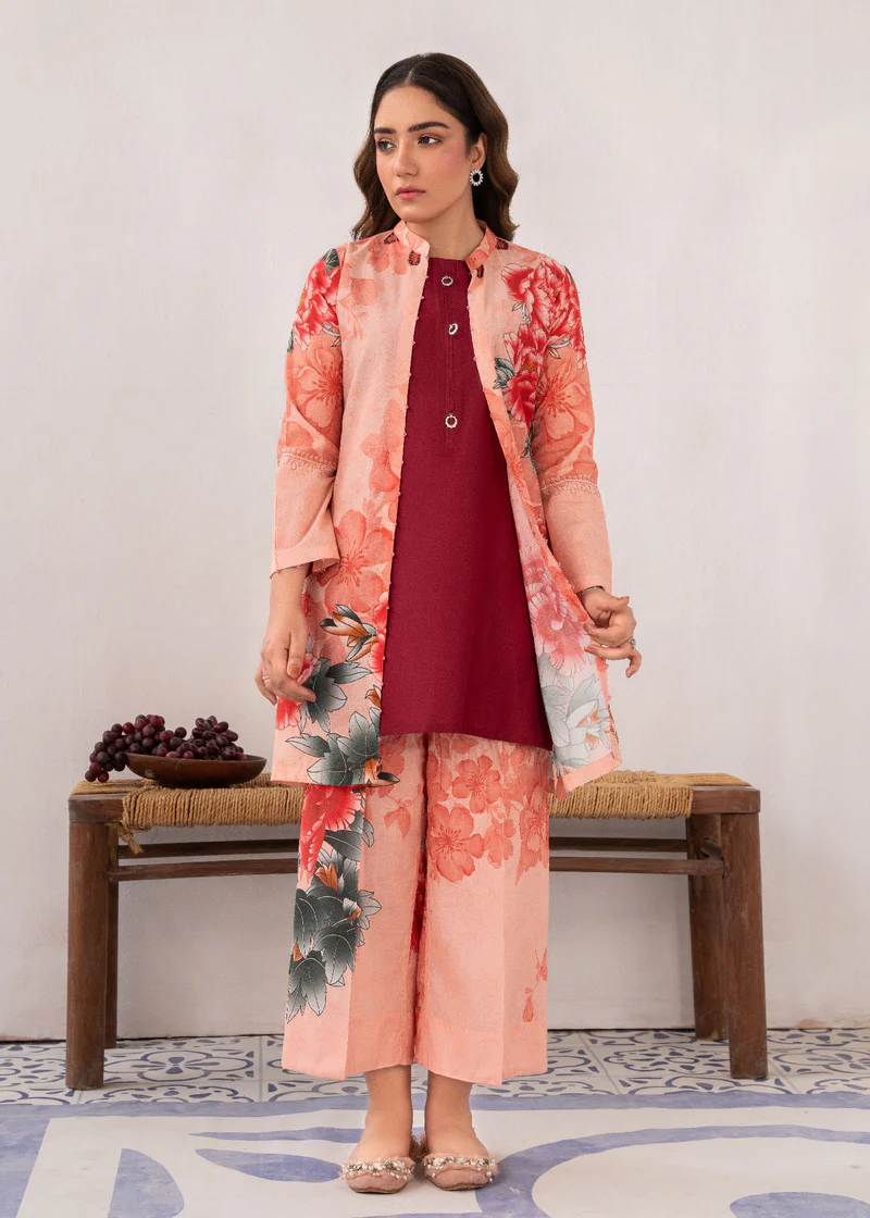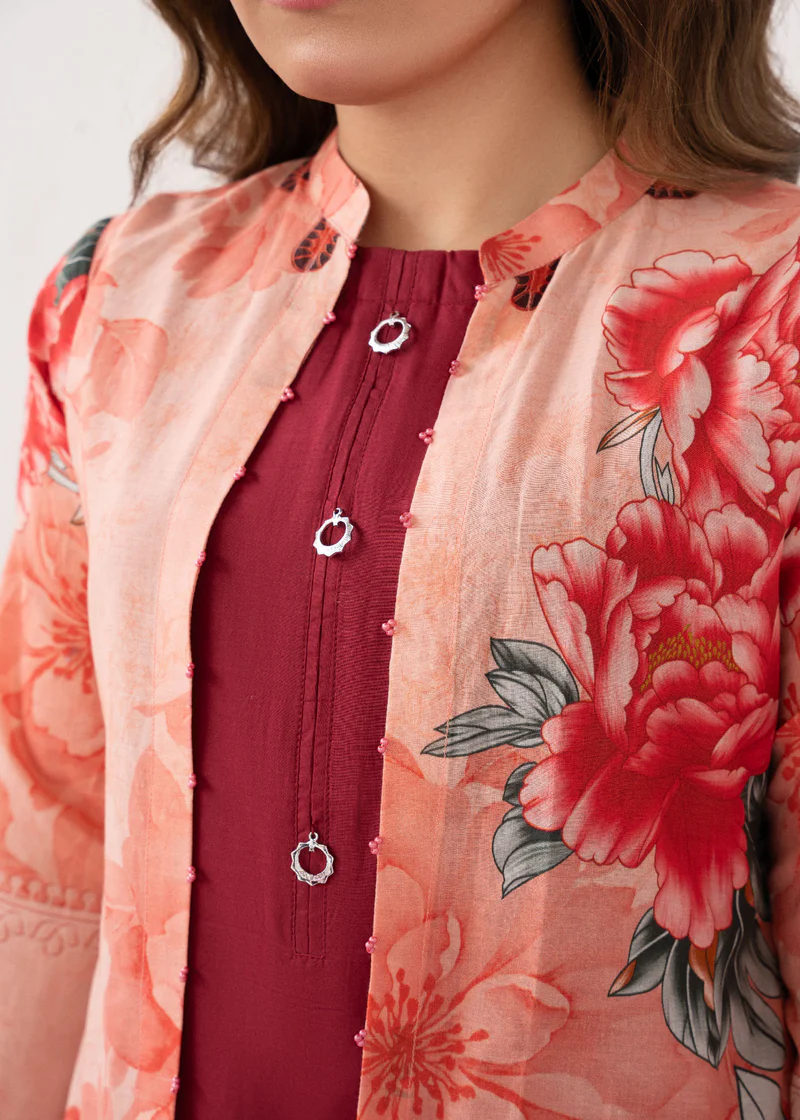 Additional Description: Fuchsia: Vibrant and vivacious, this 3 pcs ensemble is a celebration of color and confidence. Complete the look with coordinating trousers and a chic jacket for an added layer of sophistication and style.